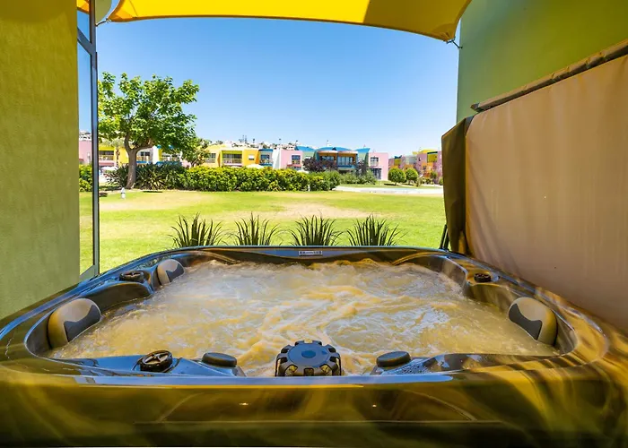 Situata a 25 minuti a piedi da Mother Church of Albufeira, la villa Romantic With Private Hot Tub & Parking - Big Pool - Marina Access Albufeira, dispone di una terrazza con vista sul giardino.